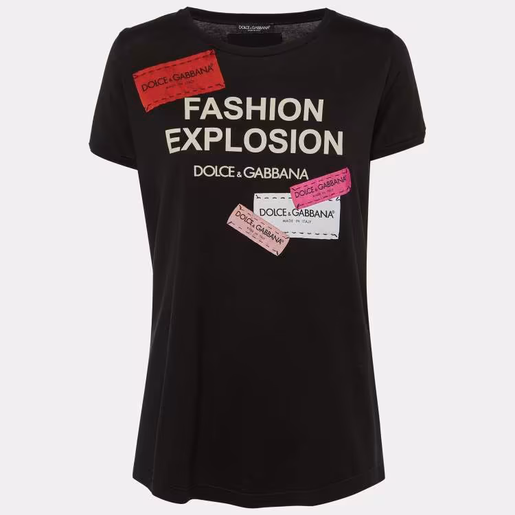 مملوكة مسبقًا Dolce & Gabbana Black Printed Cotton Logo Patch Detail T-Shirt S
