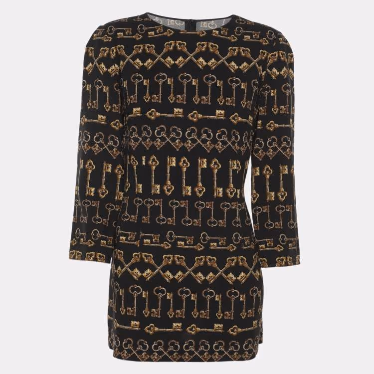 Dolce & Gabbana Black Printed Crepe Long Sleeve Blouse M