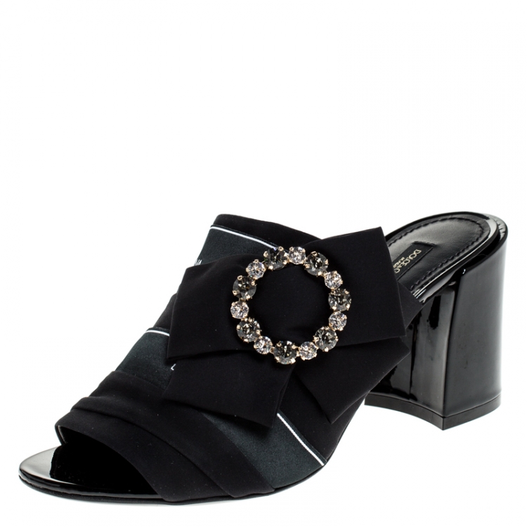 Dolce & Gabbana Black Satin Crystal Embellished Open Toe Mules Size 37