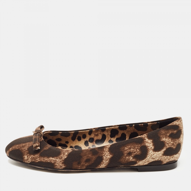 Dolce & Gabbana Brown Canvas Leopard Print Ballet Flats Size 36
