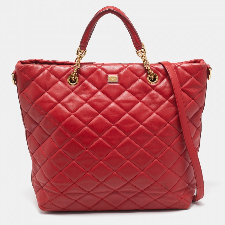Dolce & Gabbana Red Quilted Leather Chain Shopper Tote