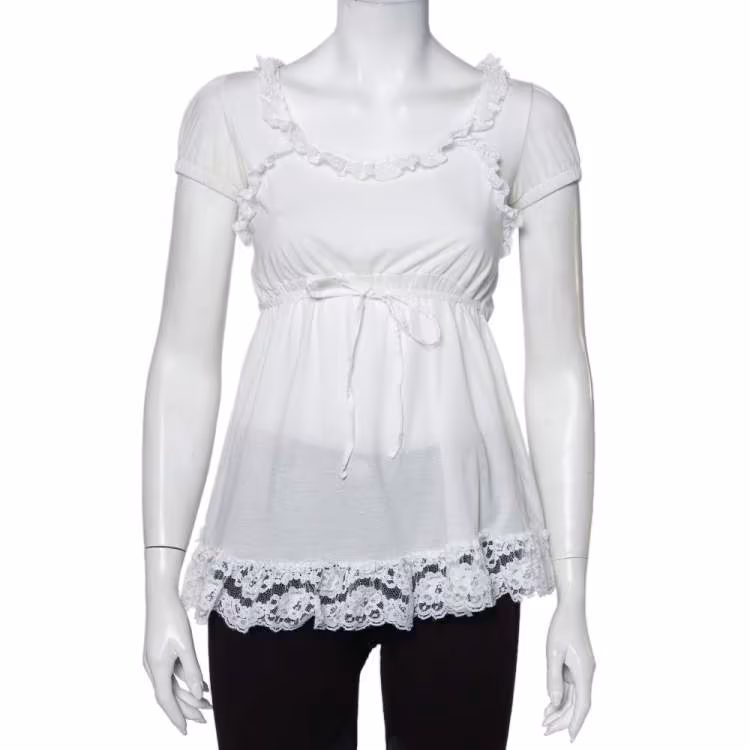 Dolce & Gabbana White Knit Lace Trim Waist Tie Detail Top M