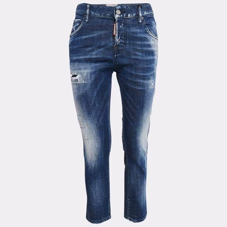 Dsqaured2 Blue Washed Denim Cool Girl Cropped Jeans S Waist 32"