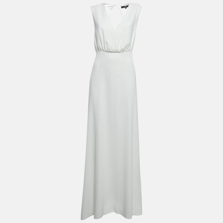 Pre Owned Elisabetta Franchi White Crepe Back Open Maxi Dress M