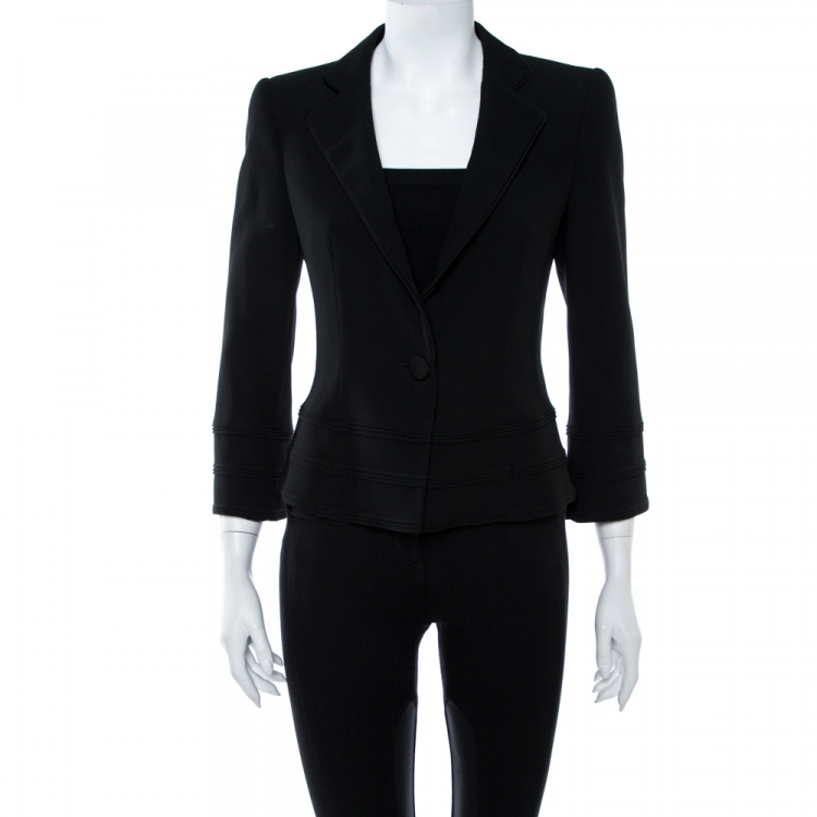 Emporio Armani Black Crepe Pintuck Detail Blazer S