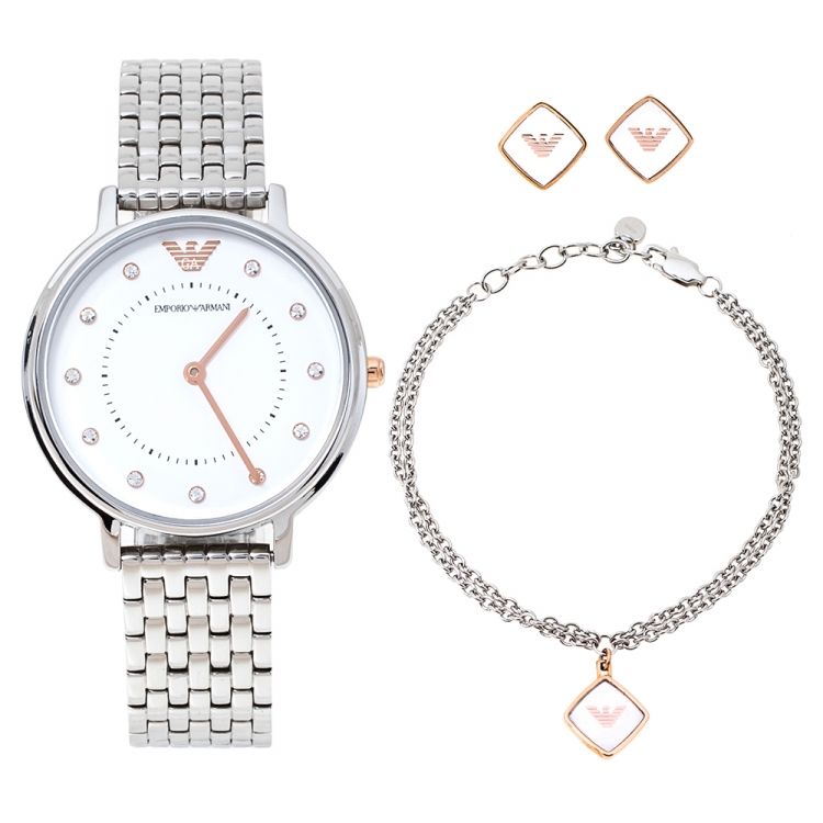 Original Box, Original Case, Two-Tone Stainless Steel Stud Earrings (Dimension:10 mm x 10 mm), Two-Tone Stainless Steel Bracelet (18.50 cm long)