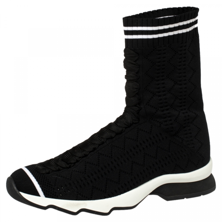 Fendi Black Knit Fabric Sock High Top Sneakers Size 37.5