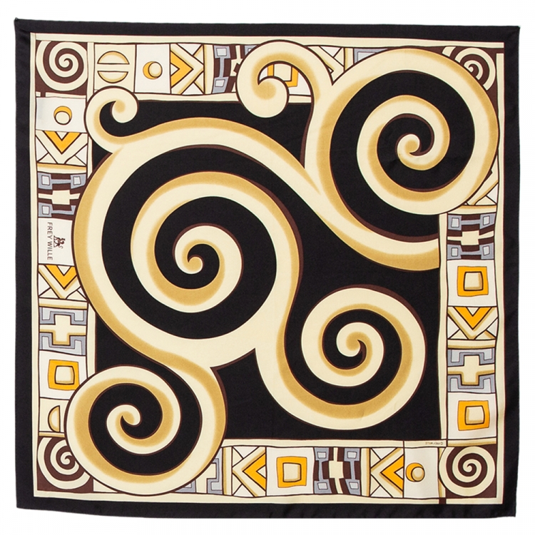 Pre Owned Frey Wille Black Hommage à Gustav Klimt Silk Scarf