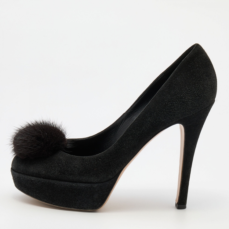Gianvito Rossi Black Suede and Mink Fur Platform Pumps Size 37