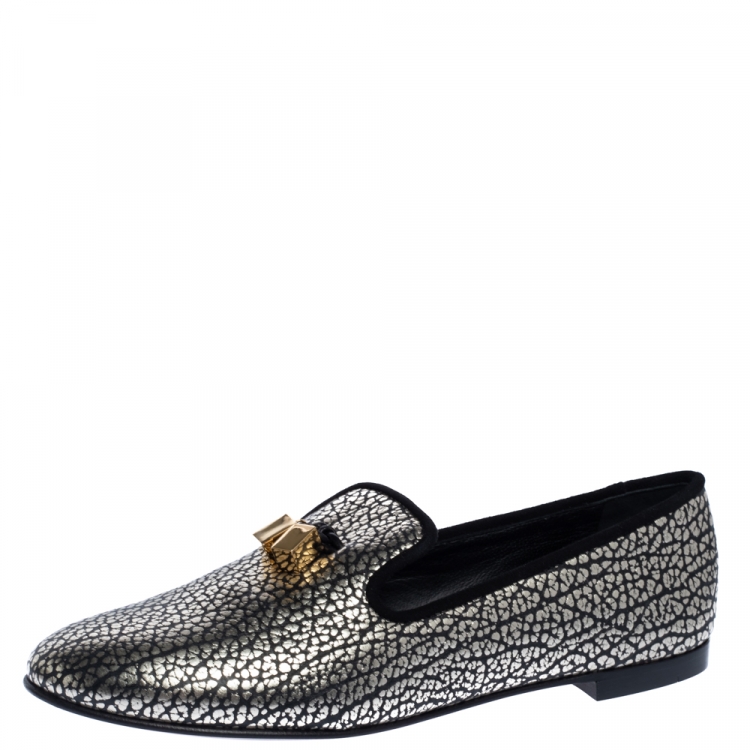 Giuseppe Zanotti Black/Silver Textured Leather Smoking Slippers Size 39