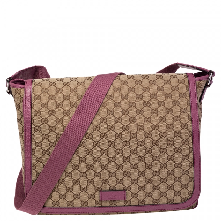 Gucci Beige/Pink GG Canvas and Leather Messenger Diaper Bag