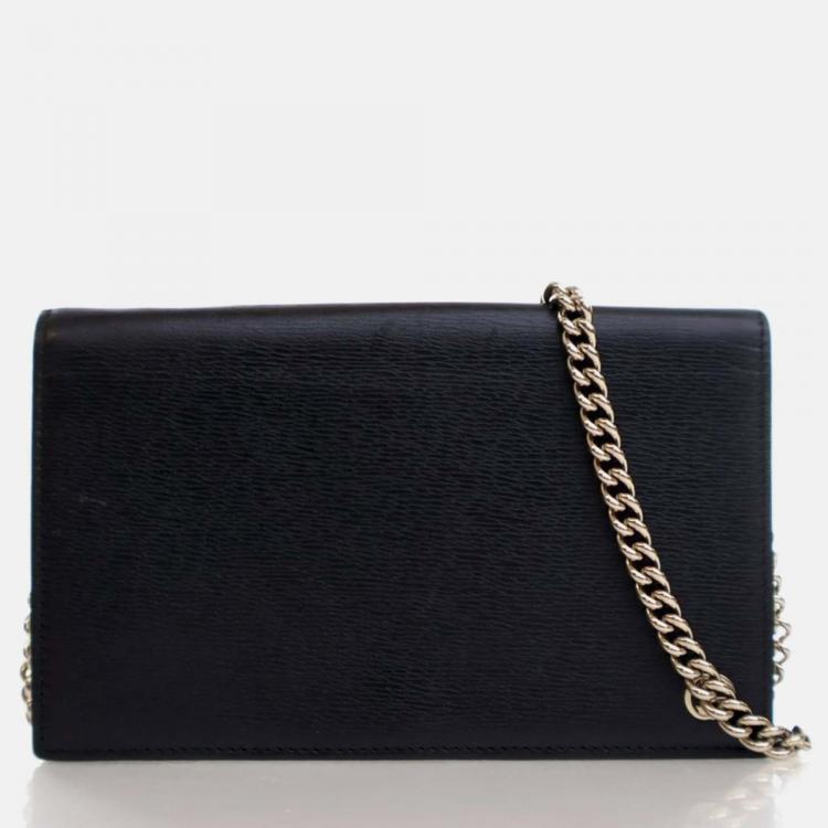 Pre Owned Gucci Betty Black Calfskin Wallet On Chain