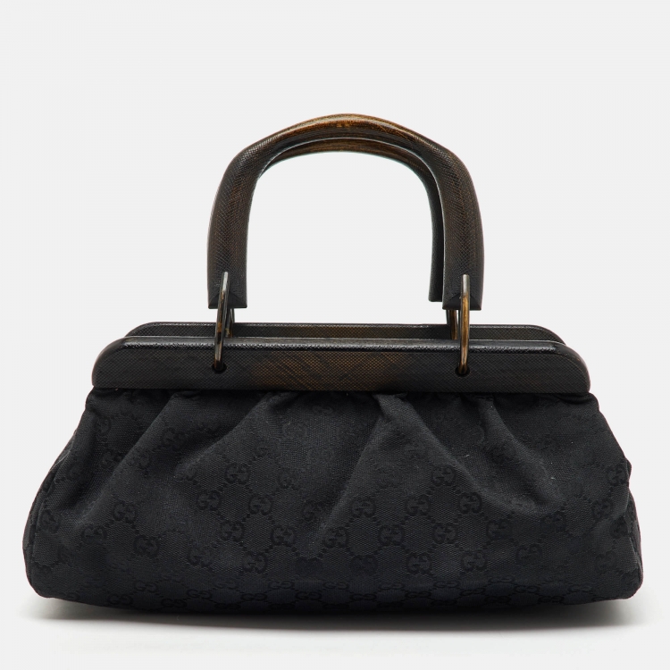 Gucci Black GG Canvas Wood Handle Frame Bag