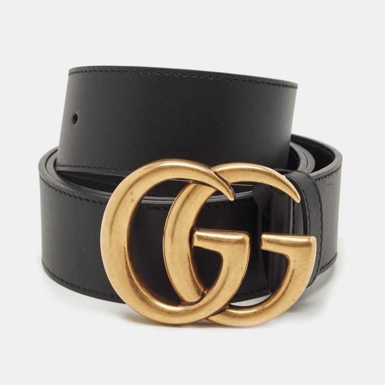 Gucci Black Leather Double G Buckle Belt 90CM