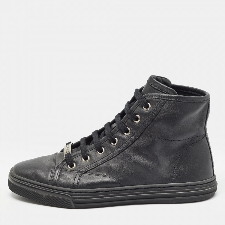 Gucci Black Leather GG High Top Sneakers Size 36.5