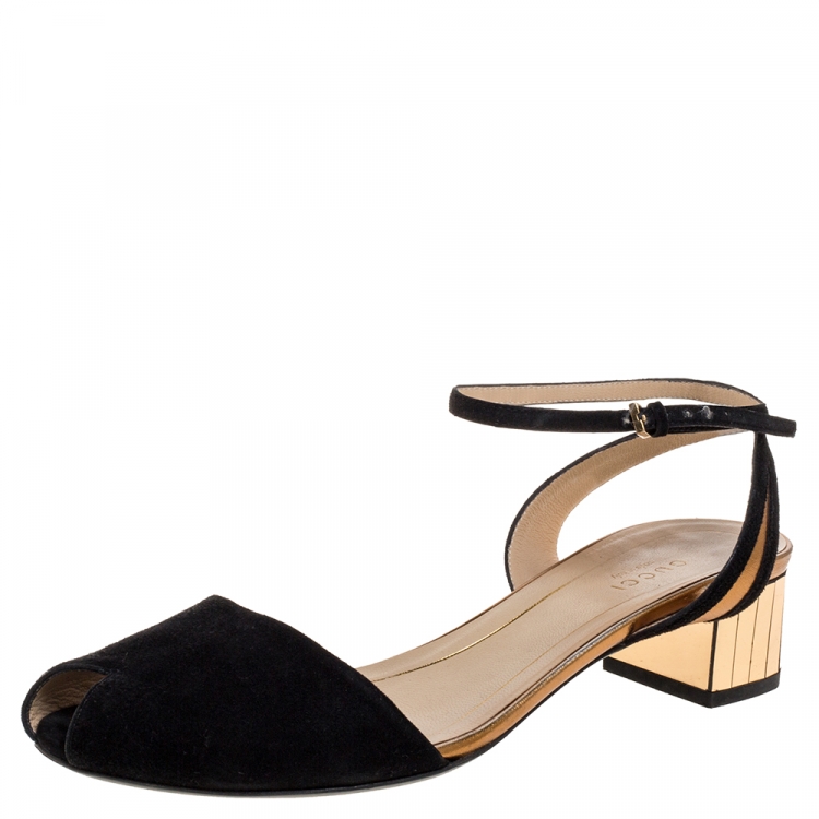 Gucci Black/Gold Suede Leather Peep Toe Slingback Sandals Size 37.5