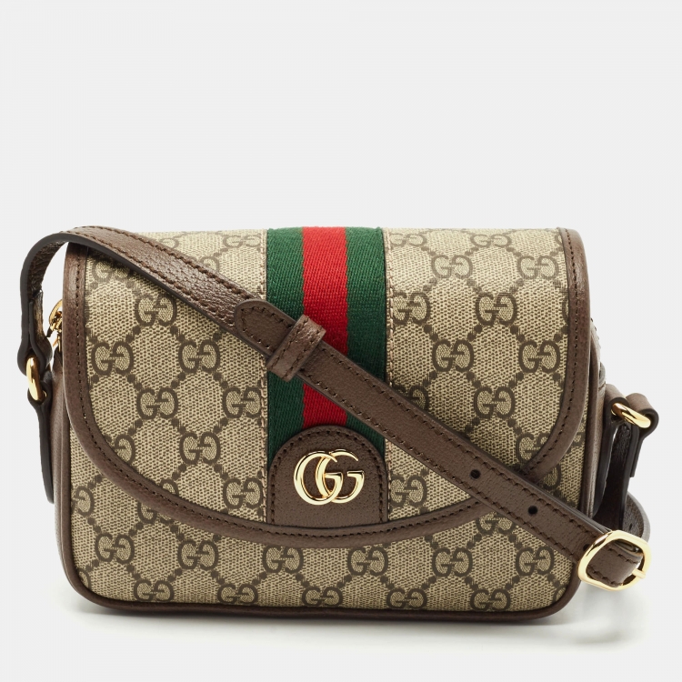 Gucci Brown/Beige GG Supreme Canvas and Leather Ophidia Flap Crossbody Bag