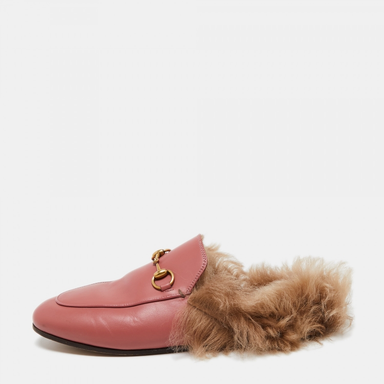 Gucci Pink Leather Horsebit Princetown Horsebit Flat Mules Size 37