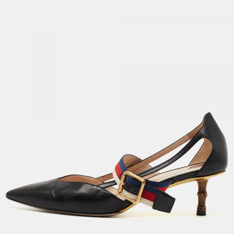 Pre Owned Gucci Black Leather Unia Mary Jane Pumps Size 35.5