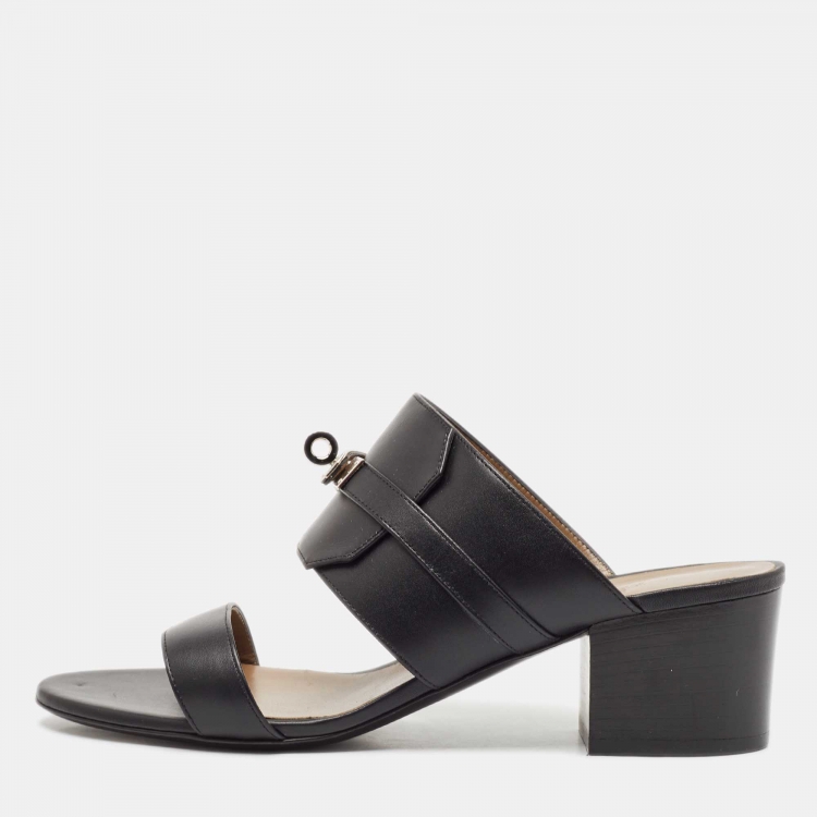 Hermes Black Leather Ovation Slide Sandals Size 39