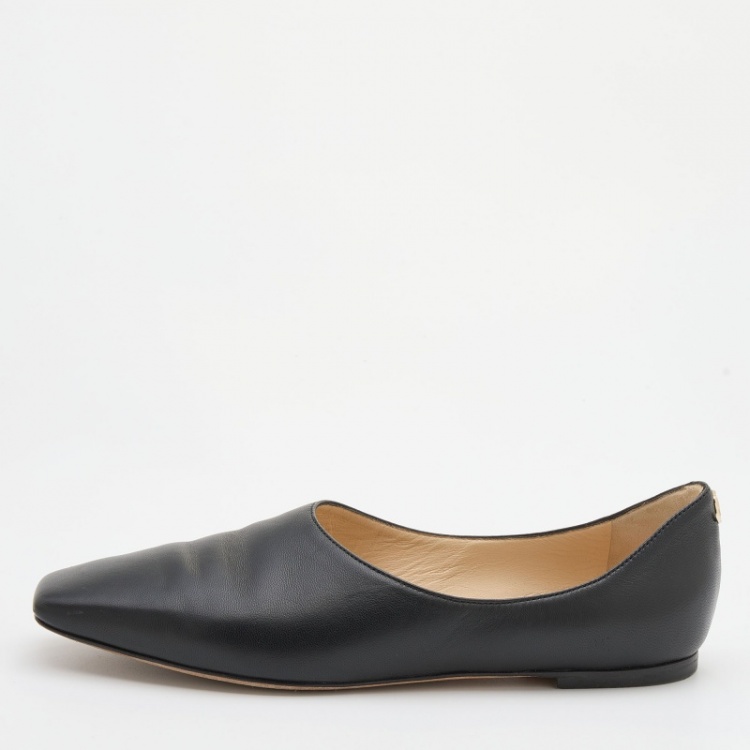 Jimmy Choo Black Leather Square Toe Ballet Flats Size 37