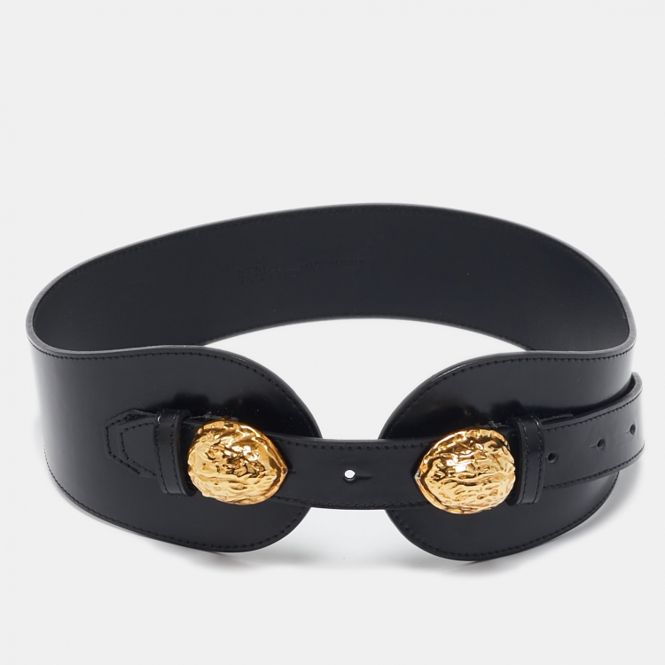 Kenzo Black Leather Metal Detail Wide Waist Belt M