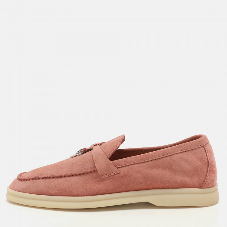 Loro Piana Pink Suede Summer Charms Walk Slip On Loafers Size 38