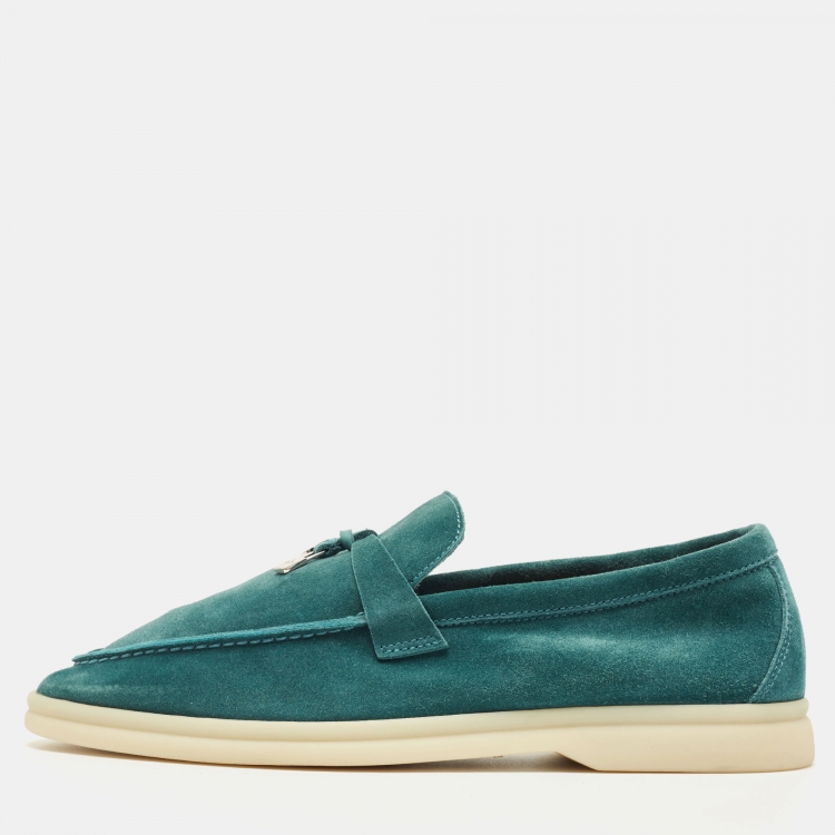 Loro Piana Teal Suede Summer Charms Walk Loafers Size 38