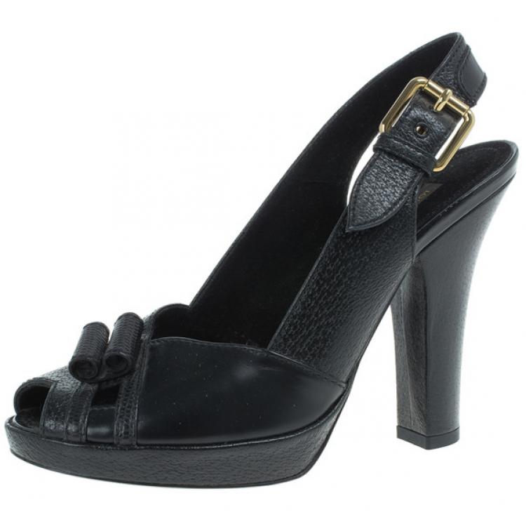 Louis Vuitton Black Leather Platform Slingback Sandals Size 36