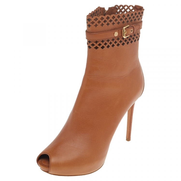 Louis Vuitton Brown Perforated Leather Mid Calf Platform Boots Size 37.5