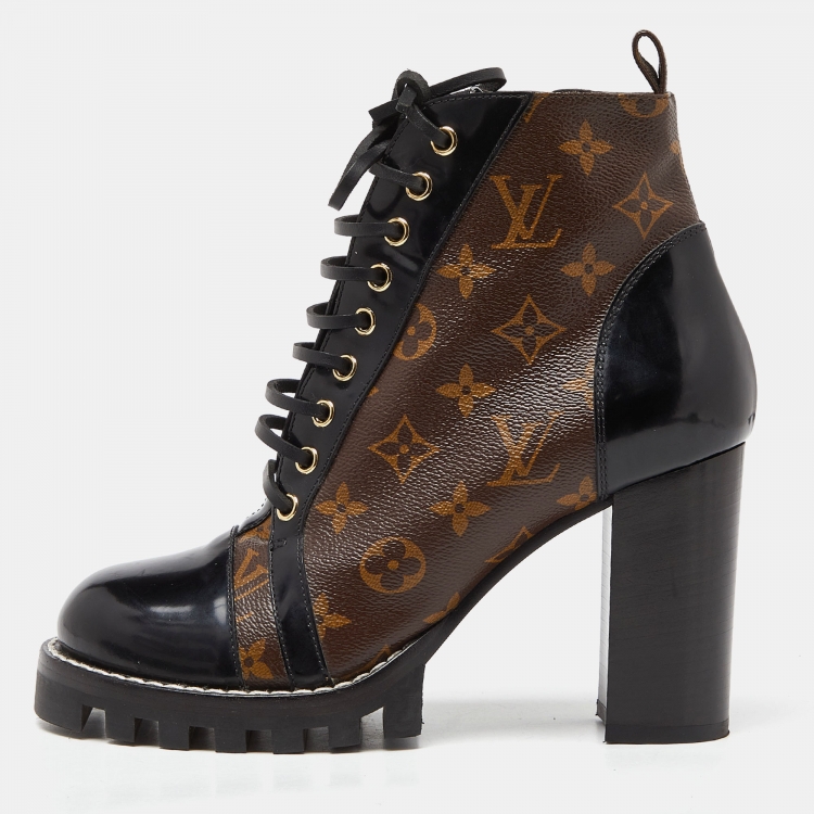 Louis Vuitton Brown/Black Monogram Canvas And Patent Leather Star Trail Ankle Boot Size 40