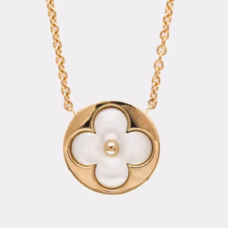 Louis Vuitton Monogram Sun MOP Pink Gold 18K Mother Of Pearl Men Women Fashion Pendant Necklace Pink Gold