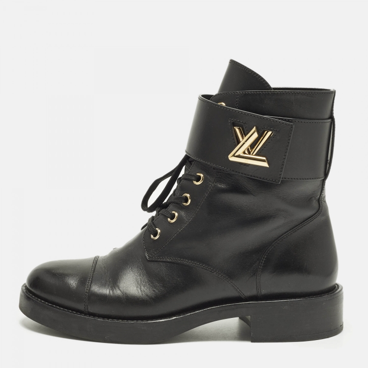Louis Vuitton Wonderland Ranger Size 38.5 Black Leather Combat Boots