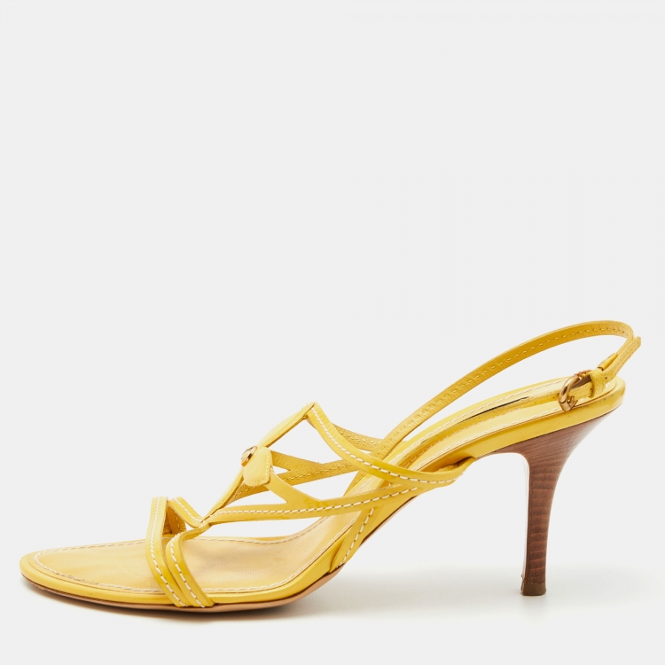 Louis Vuitton Yellow Patent Leather Strappy Slingback Sandals Size 38.5