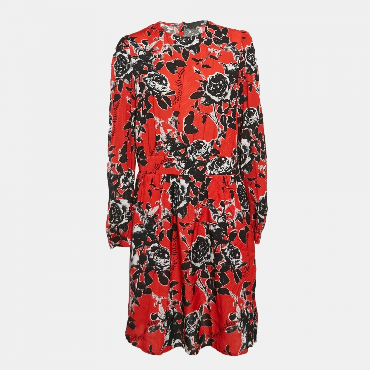 Love Moschino Red Textured Floral Print Crepe Short Dress M