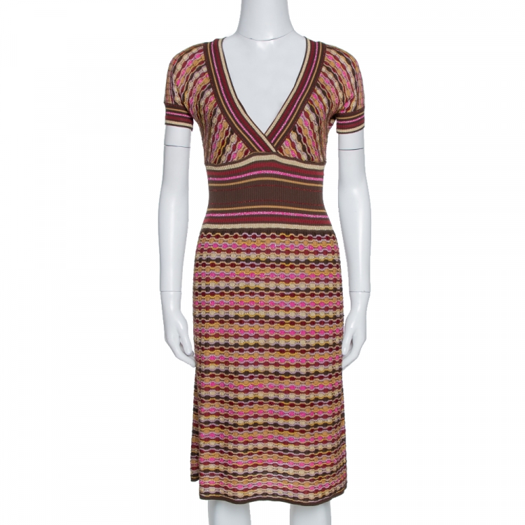 M Missoni Brown Lurex Wool Blend Knit Fit & Flare Dress M