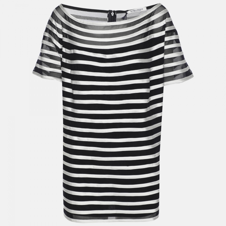 Pre Owned Marina Rinaldi Midnight Blue/White Jersey Ribbon Scoop Neck Tops XL