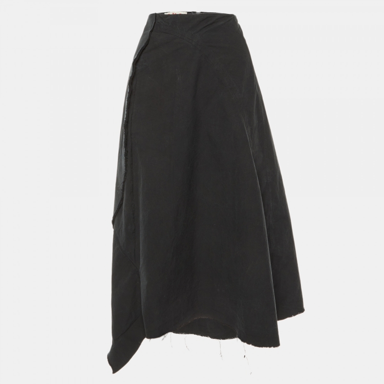 Marni Black Washed Cotton Asymmetric Midi Skirt L