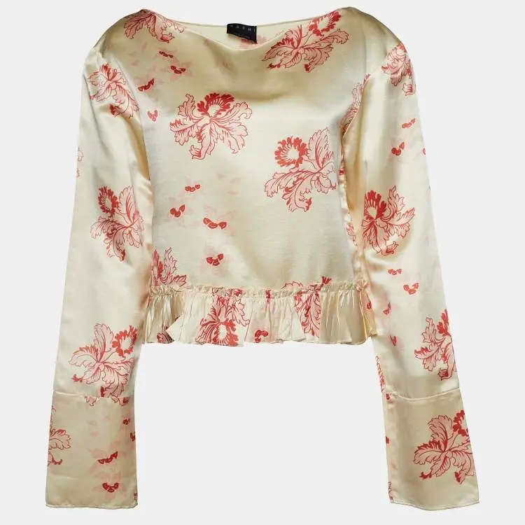 Marni Cream Floral Print Silk Long Sleeve Blouse L