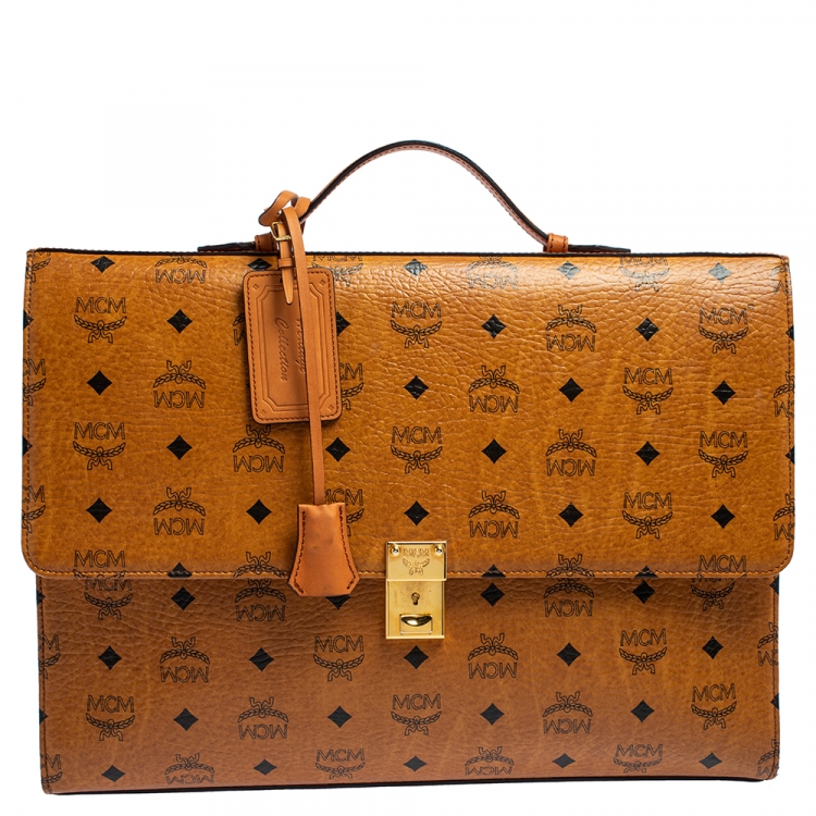 MCM Cognac Visetos Coated Canvas Heritage Briefcase