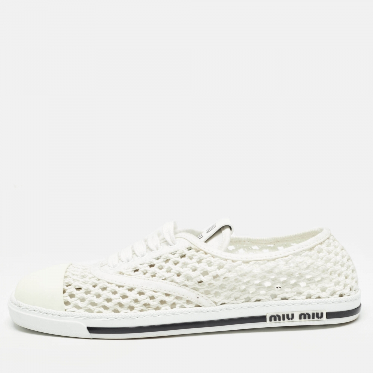 Miu Miu White Knit Fabric Lace Up Sneakers Size 39.5