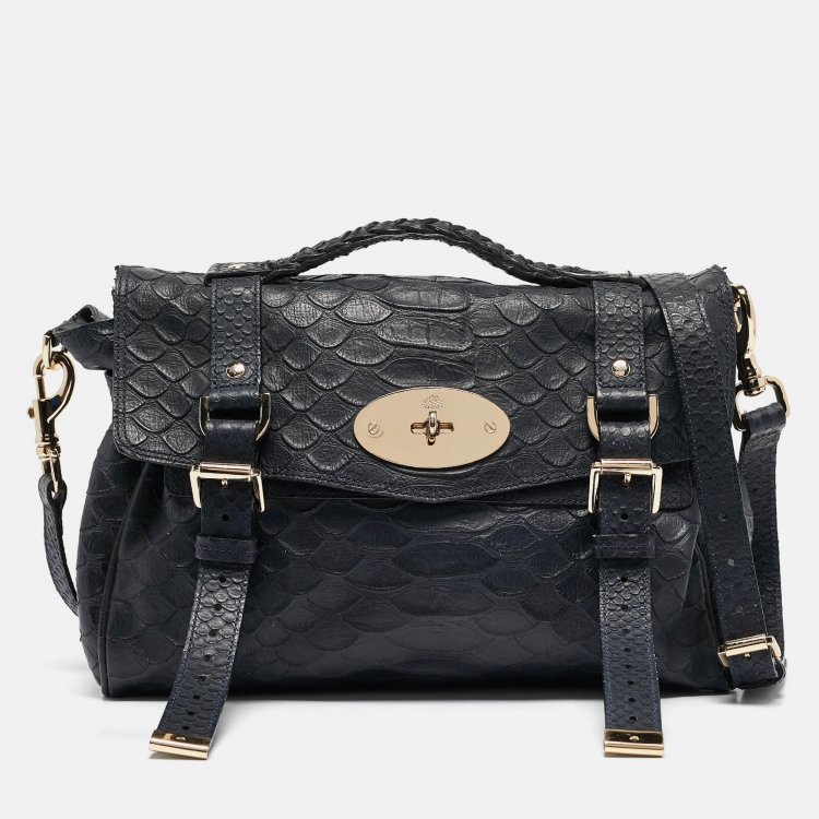 Mulberry Navy Blue Python Embossed Leather Alexa Satchel