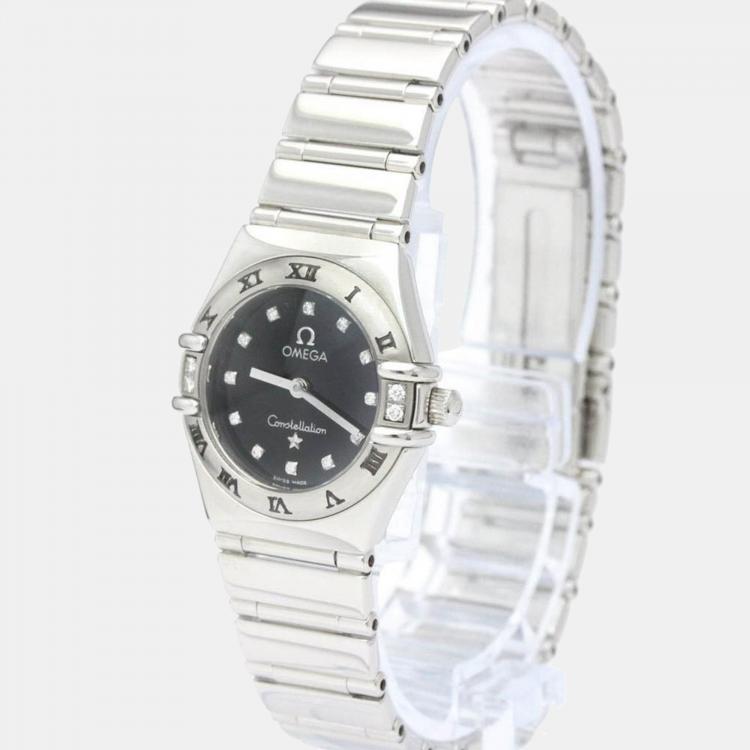 Omega Black Diamond Stainless Steel Constellation 1566.56 Quartz Women's Wristwatch 22 mm