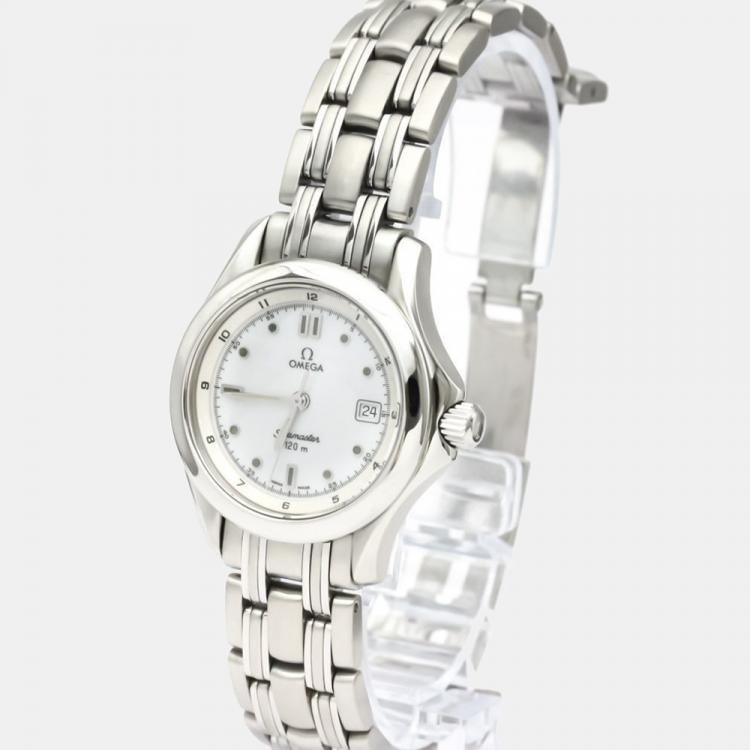 Omega White Stainless Steel Seamaster 120M Quartz 2571.20 Women's Wristwatch 28 mm