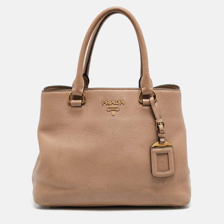 Prada Beige Leather Middle Zip Tote