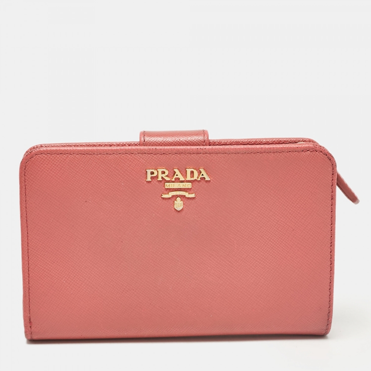 Prada Pink Saffiano Metal Leather French Wallet