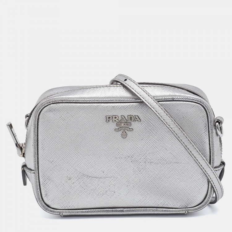 Prada Silver Leather Camera Crossbody Bag