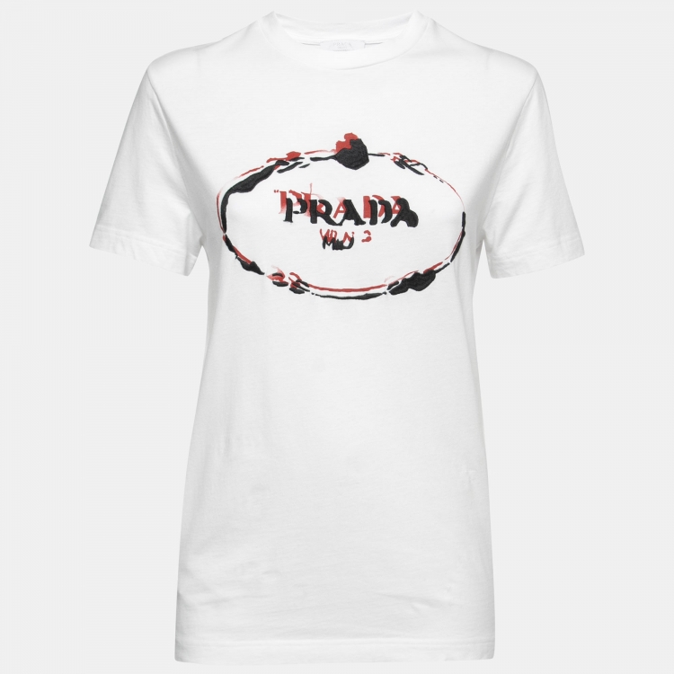 Prada White Cotton Logo Embroidered Crewneck T-Shirt S