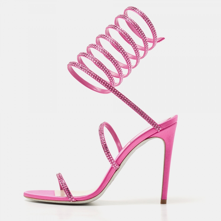 René Caovilla Pink Satin Cleo Crystal Embellished Sandals Size 38.5