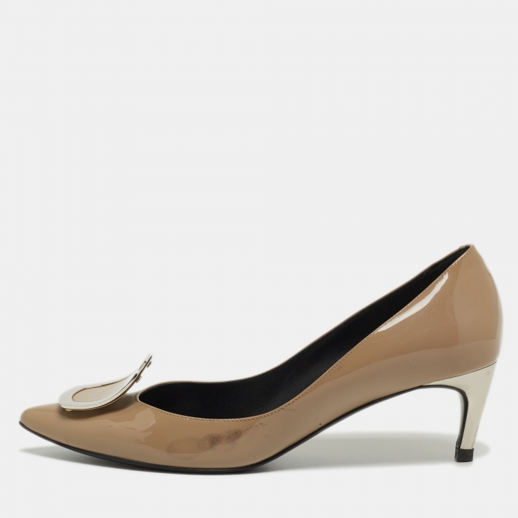 Roger Vivier Beige Patent Leather Pointed Toe Pumps Size 39